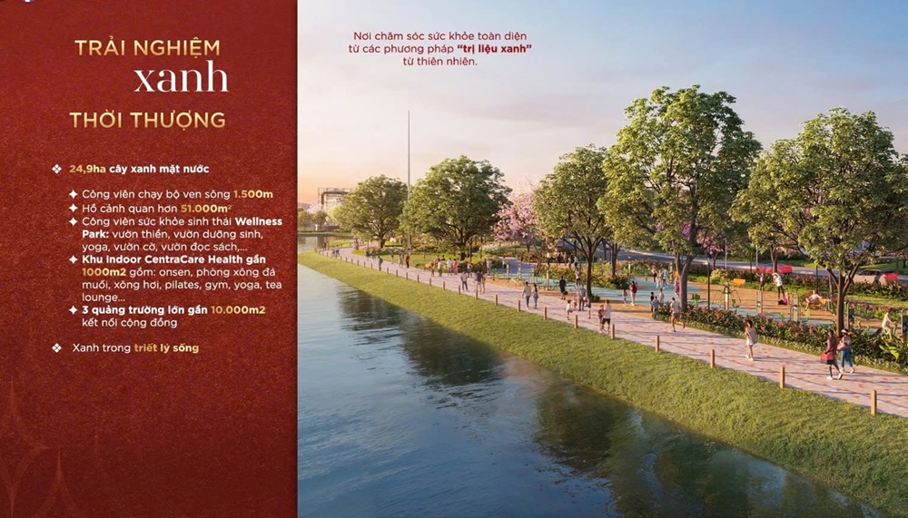 Healing Park, vườn dạo bộ, hồ điều hòa – Hệ sinh thái cân bằng, giảm nhiệt đô thị, nâng tầm chất lượng sống.